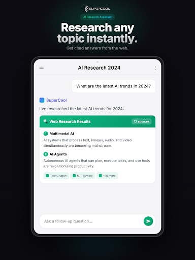 SuperCool retains conversation history automatically, allowing seamless multi-turn interactions with context-aware responses.