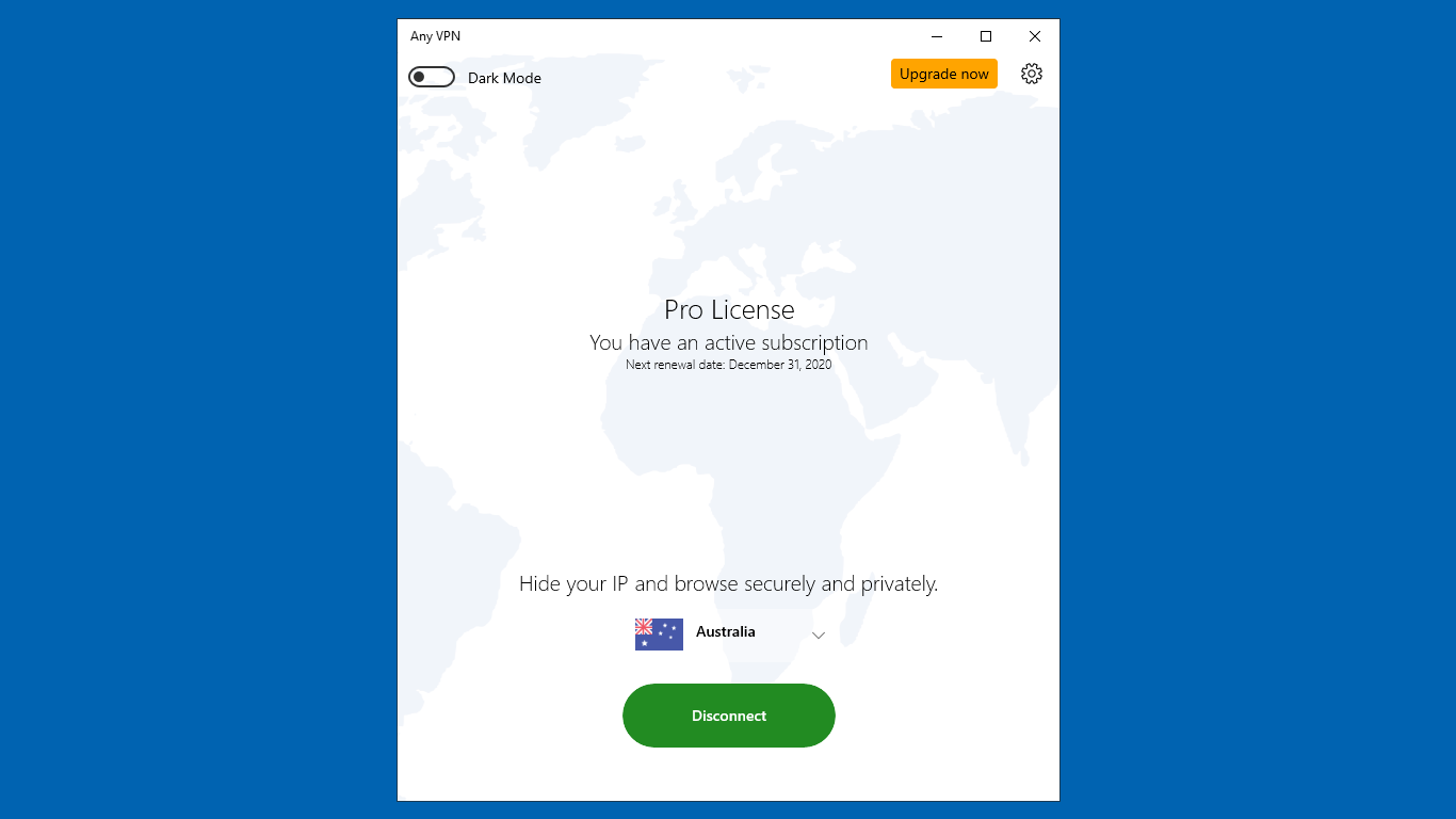 Once connected, your IP is hidden and your traffic encrypted automatically. Verify connection status within the app's main screen.