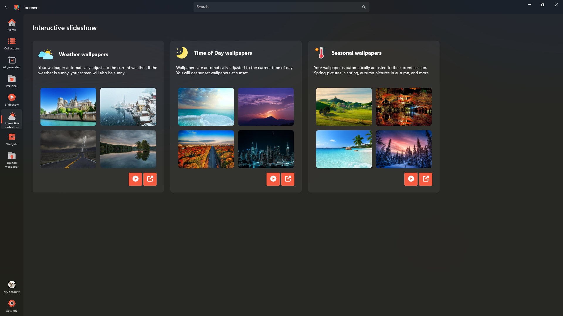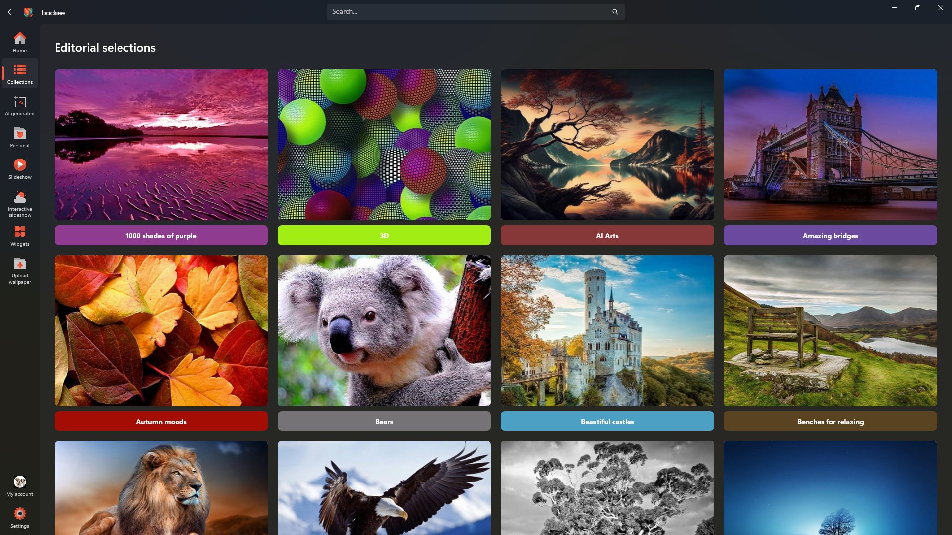 Backiee offers live wallpapers, interactive slideshows, widgets, curated collections, AI-generated images, and seamless device sync for personalized desktop experiences.
