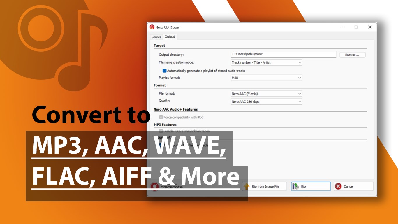 Nero CD Ripper supports MP3, AAC, WAV, FLAC, AIFF, and OGG formats for flexible listening options.
