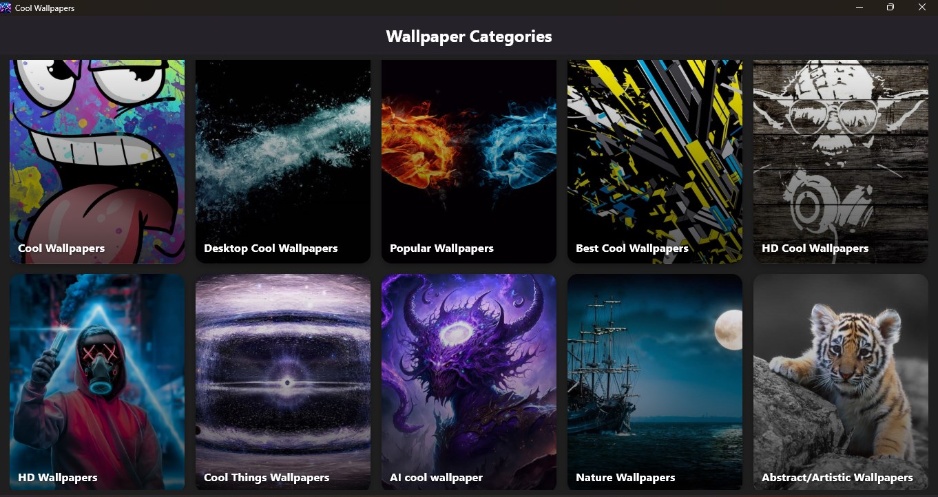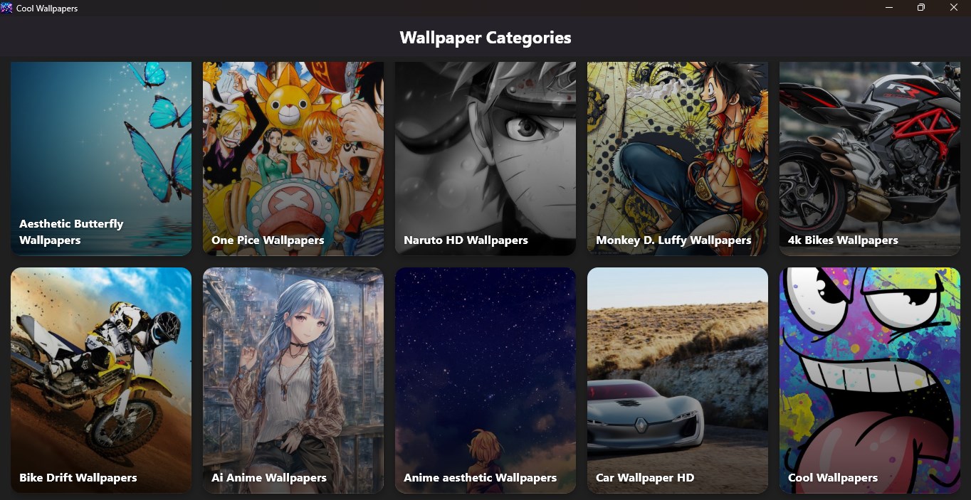 Some wallpapers require an internet connection to preview or download; future versions could include offline access to downloaded images.