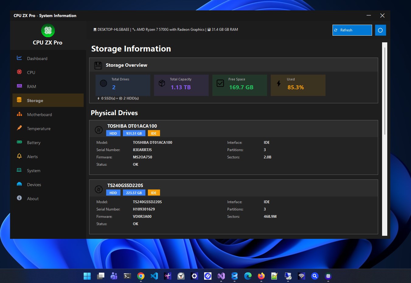 Install and launch CPU ZX Pro, then navigate to the Dashboard for real-time system monitoring. No setup is needed beyond initial installation for basic usage.