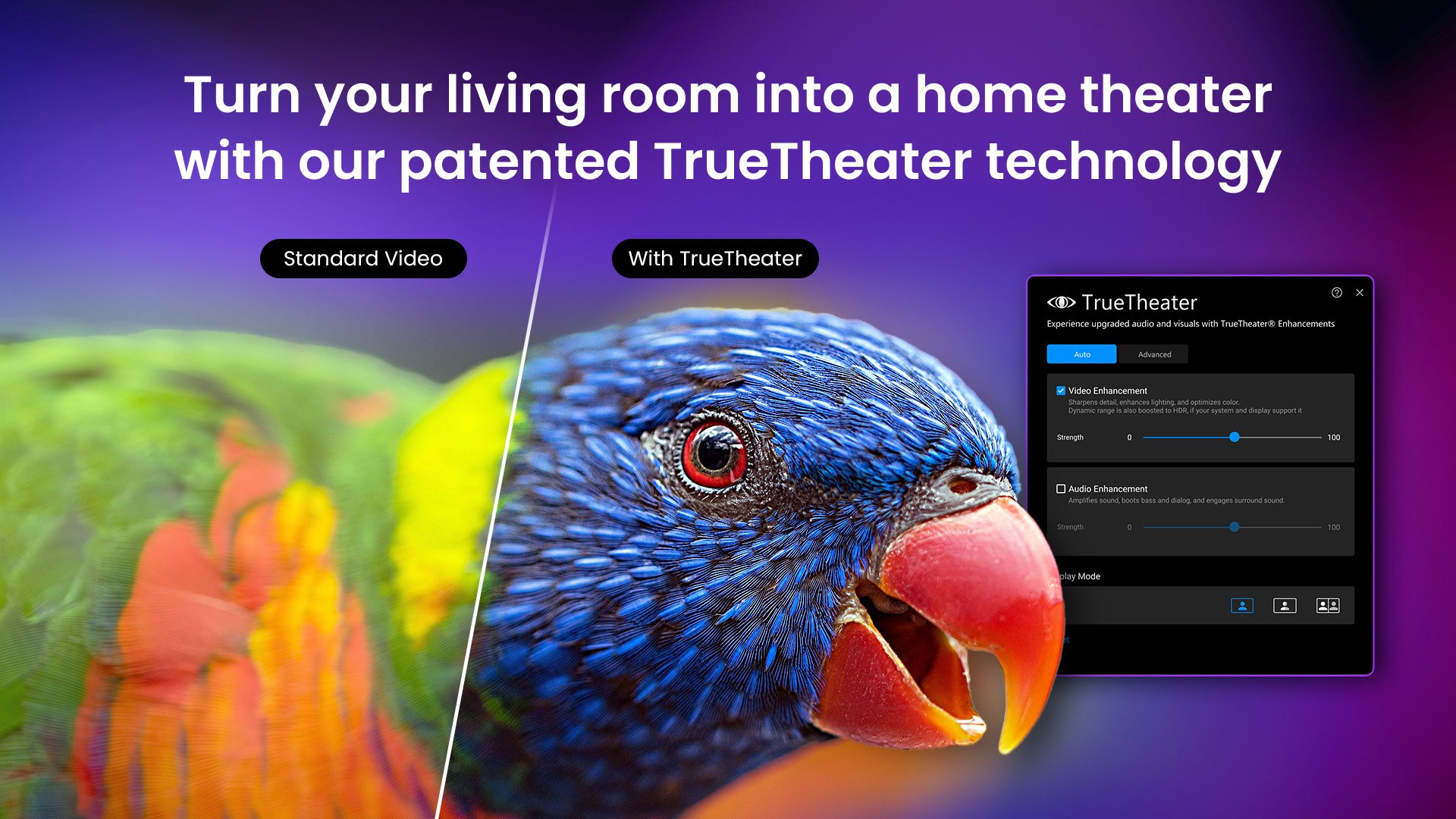 Go to Settings > Enhancements and enable TrueTheater features like HD, Color, and Sound for enhanced playback quality.