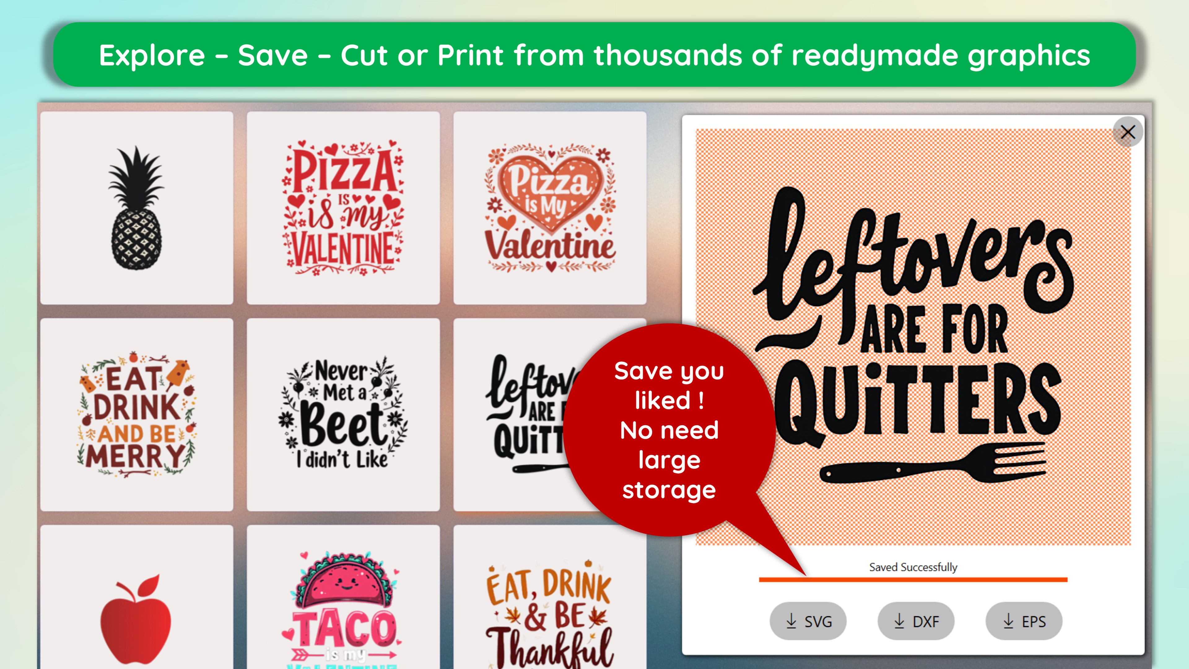 Yes, the app offers ready-to-use SVG files that you can download and import directly into your cutting software, no design skills required.