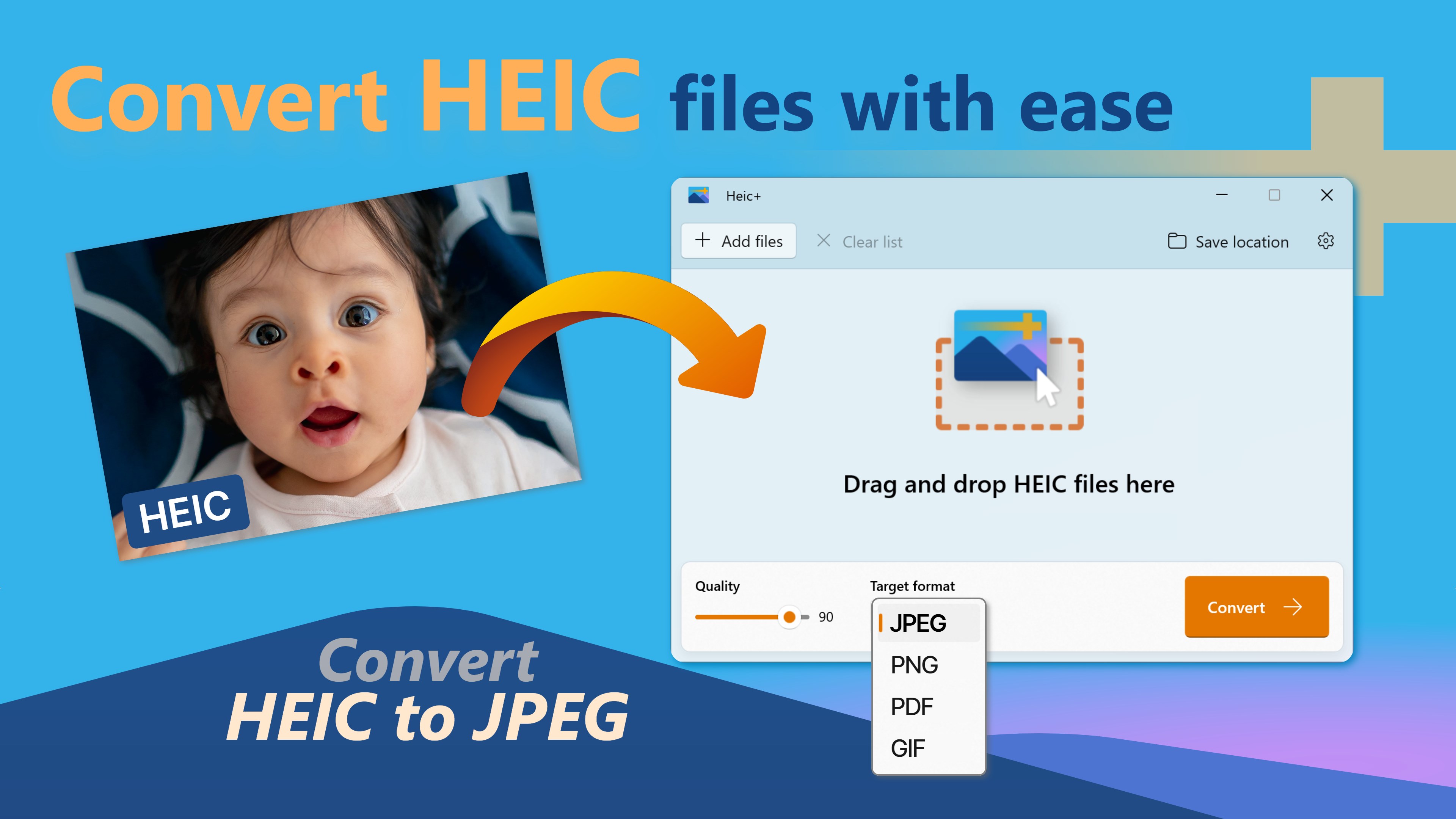 HEIC+ supports converting HEIC images to JPEG, PNG, PDF, GIF, and more, depending on your preferences.