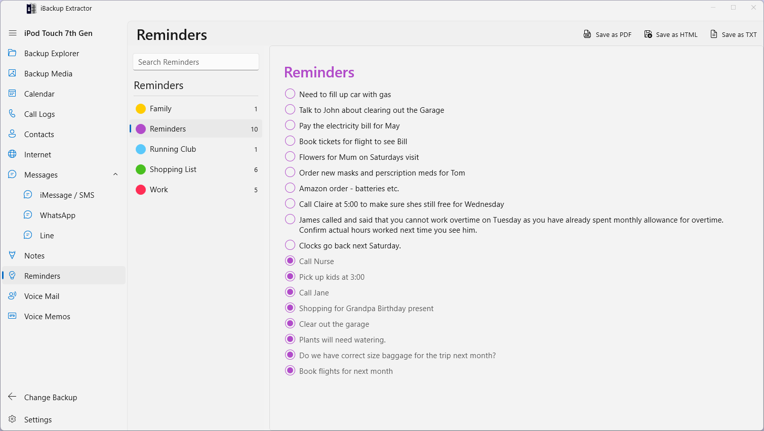 Launch the app, select your backup from the list, then browse through the categories to view your data directly within the interface.