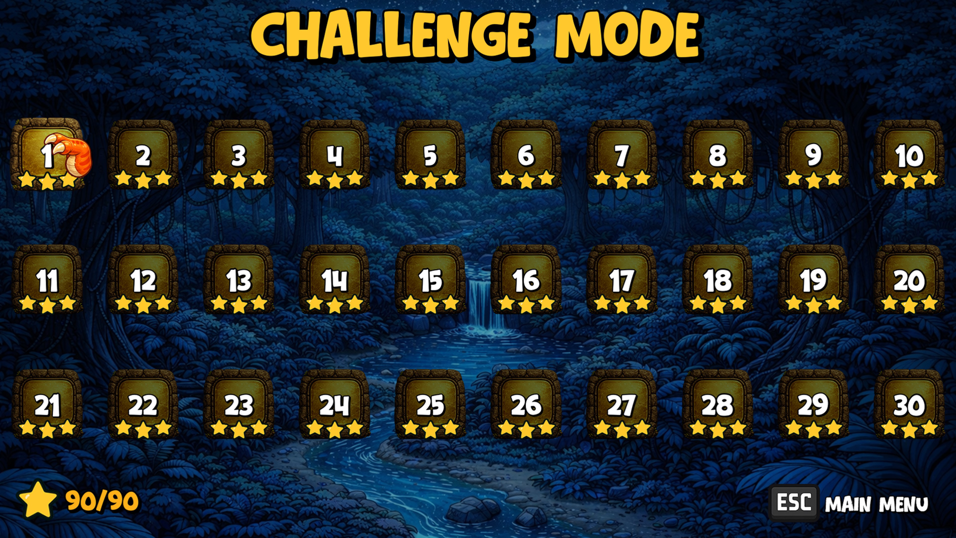 In the main menu, tap 'Mode' or 'Play' to choose between Challenge and Casual modes before starting a level.