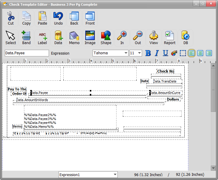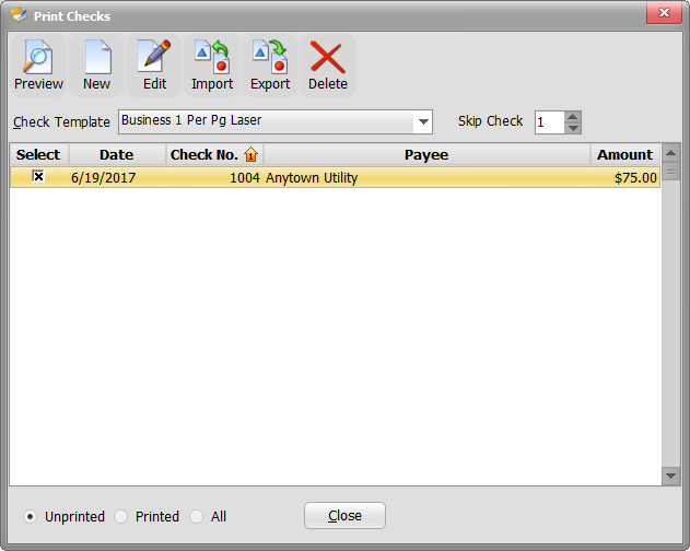 Go to Checks > Manage Templates, edit or create templates, then print directly from the app using Print Checks option.
