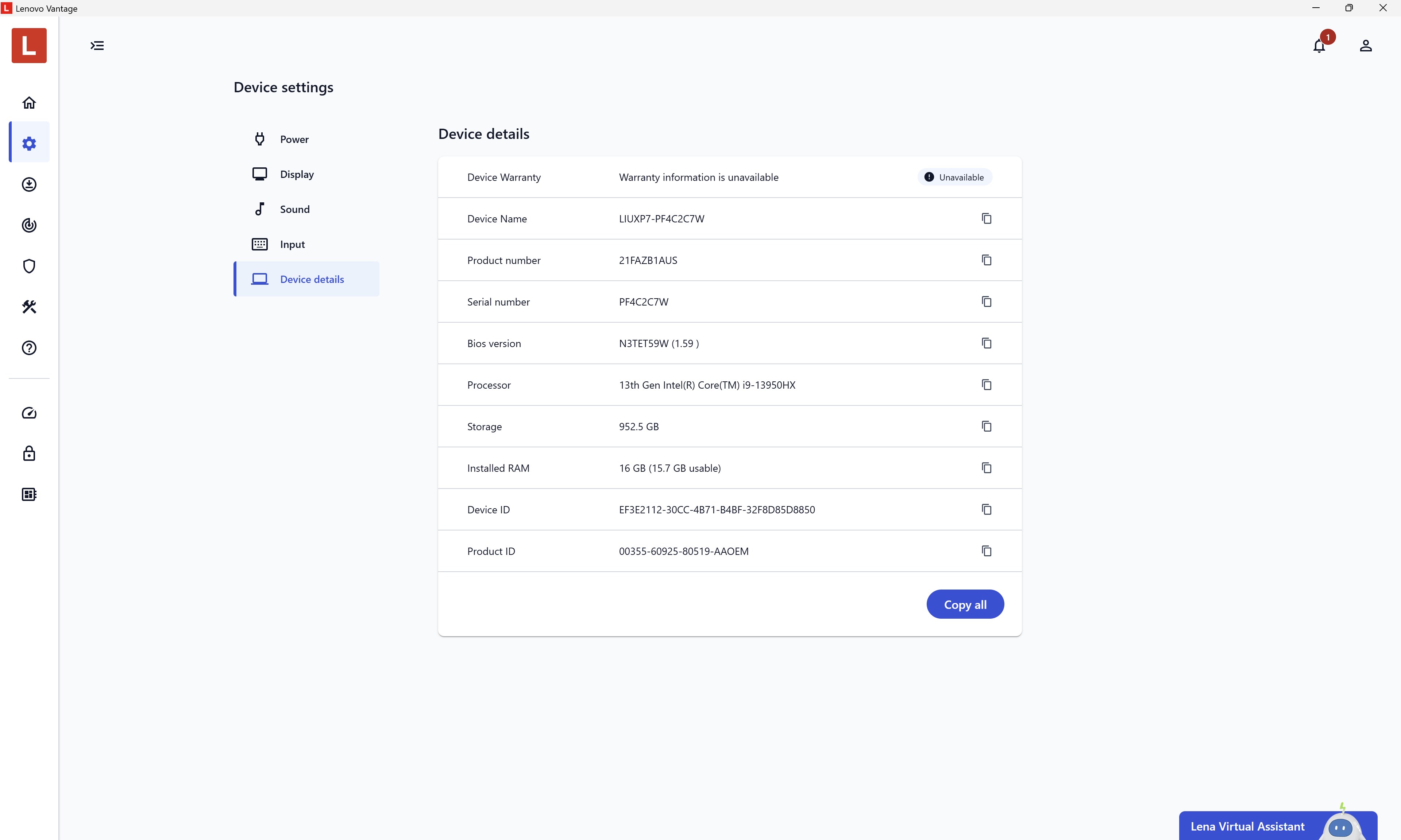 - Name Lenovo Vantage