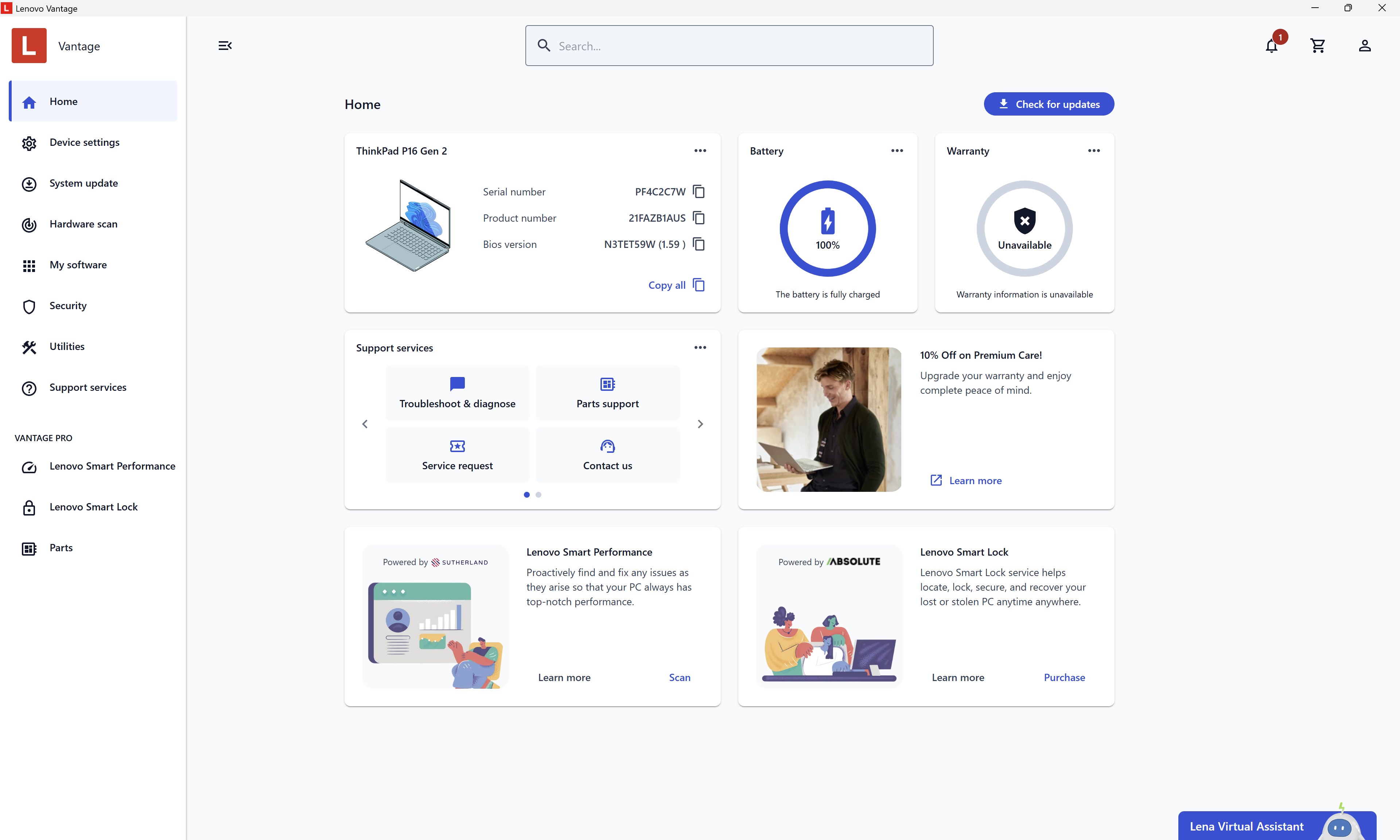 Lenovo Vantage provides an intuitive and easy-to-navigate dashboard for device management.