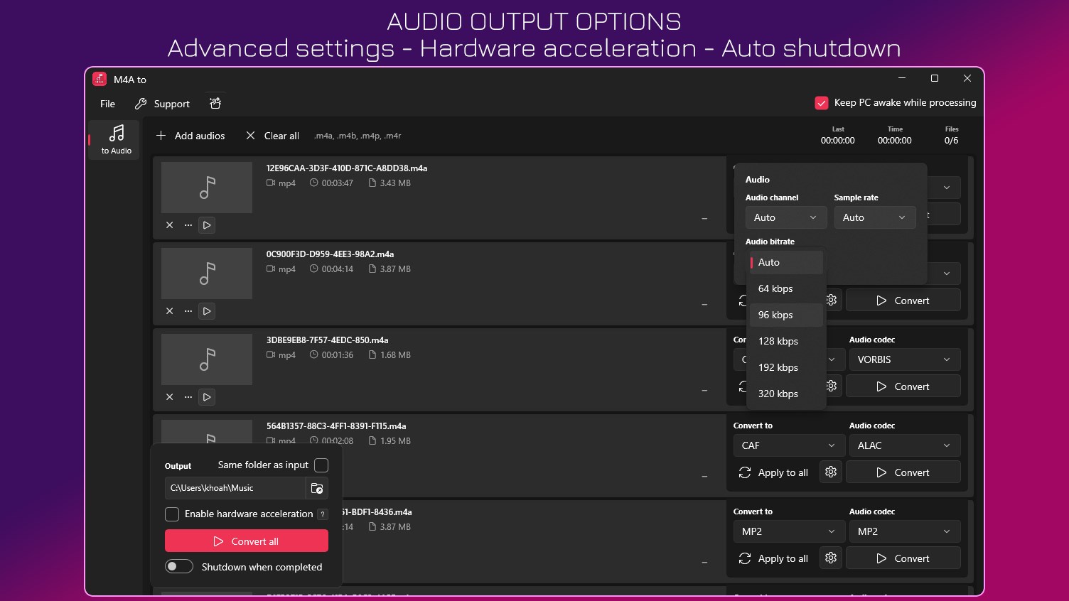 This application stands as a reliable and straightforward tool designed to convert M4A audio files into MP3 and WAV formats, making your music library more versatile and accessible across various devices.