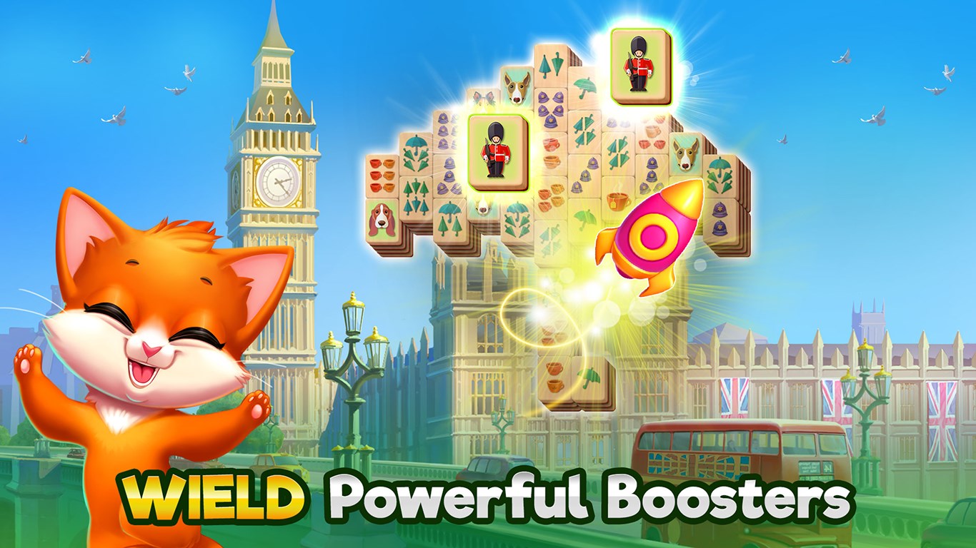The game offers dozens of layouts, achievement collection, tools like Shuffle and Firecracker, and global exploration of famous landmarks.