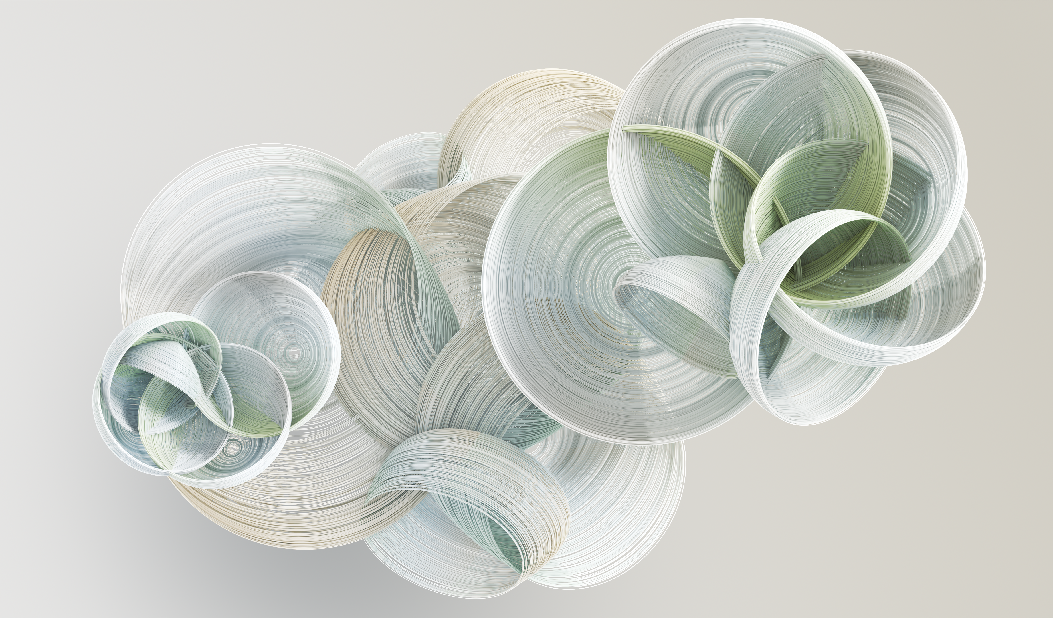 It features dynamic, sculpted ribbons and swirling clusters captured mid-flow, emphasizing fluidity and minimalistic art in each wallpaper.