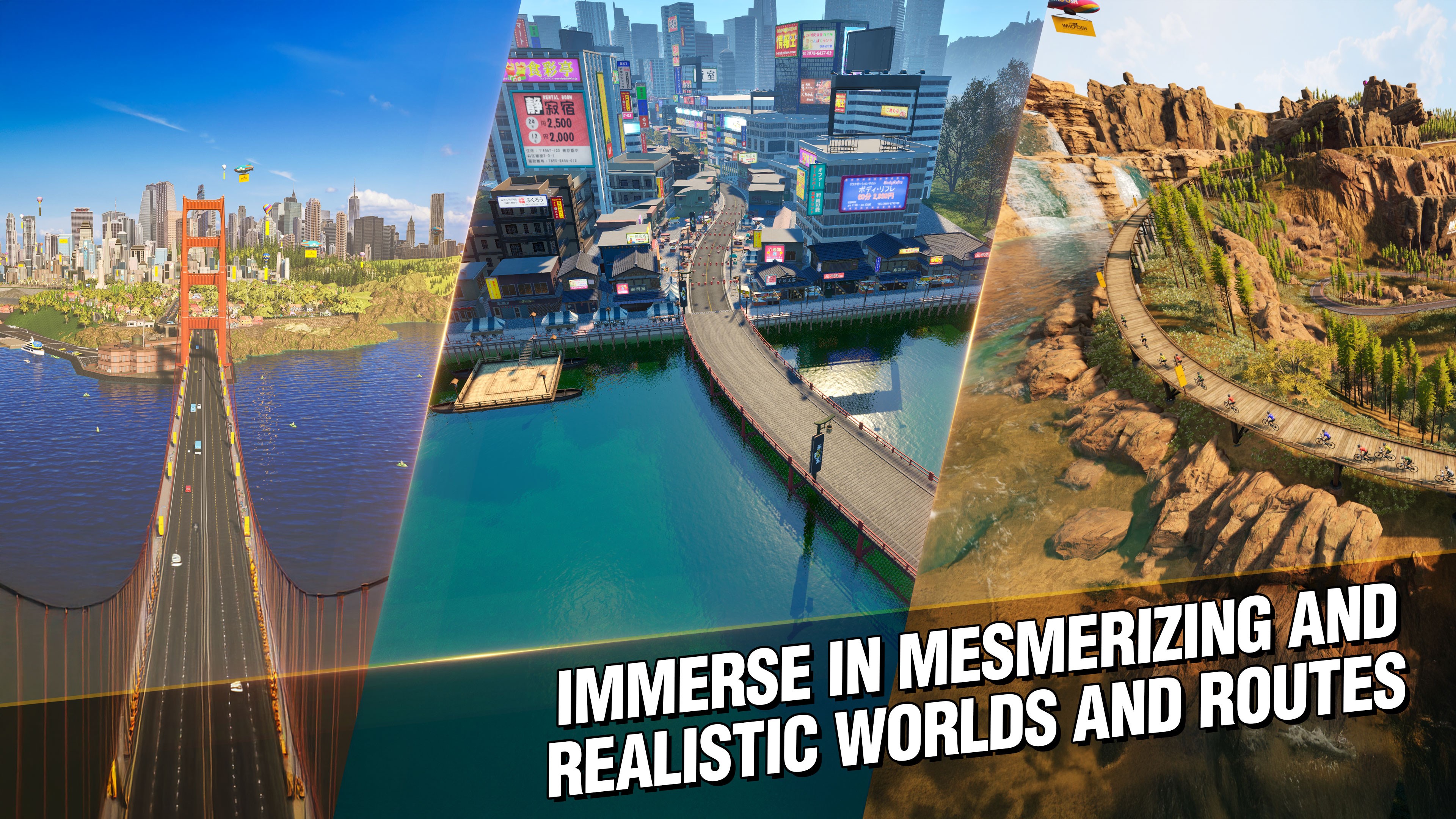Navigate to the World menu from the main screen, choose your preferred location such as California or Belgium, and start riding.