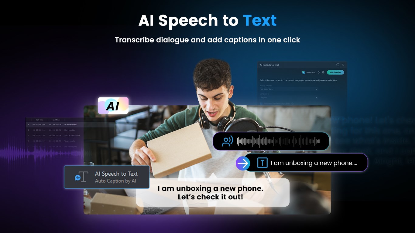 How do I convert my speech to text in PowerDirector?