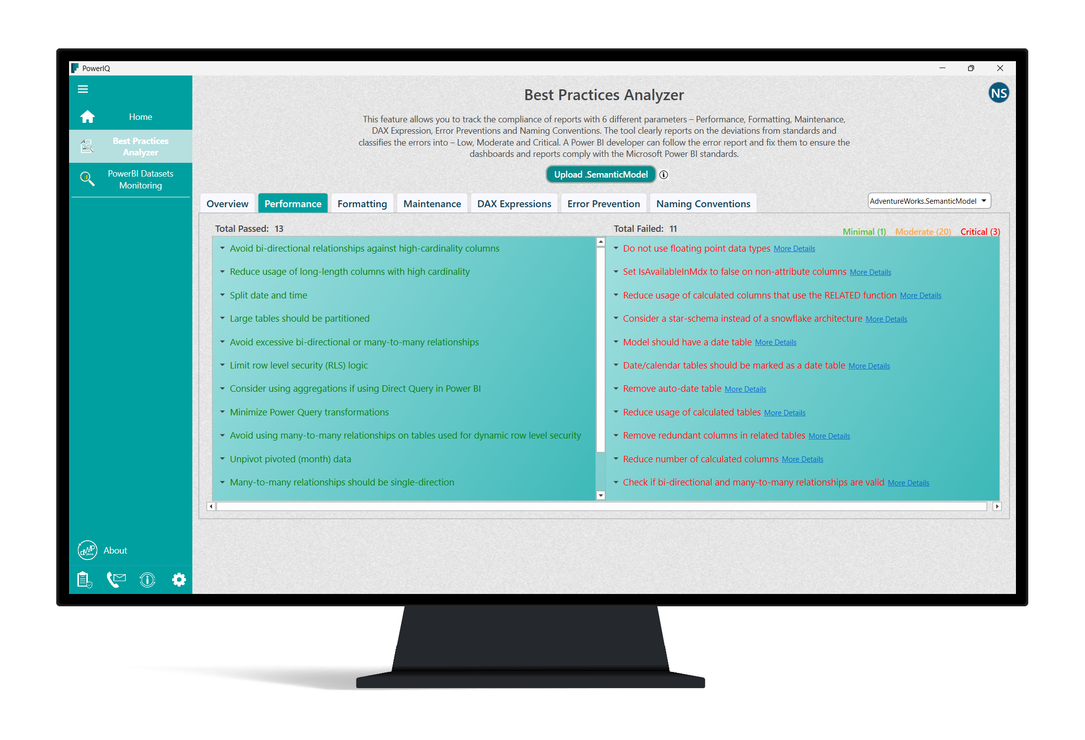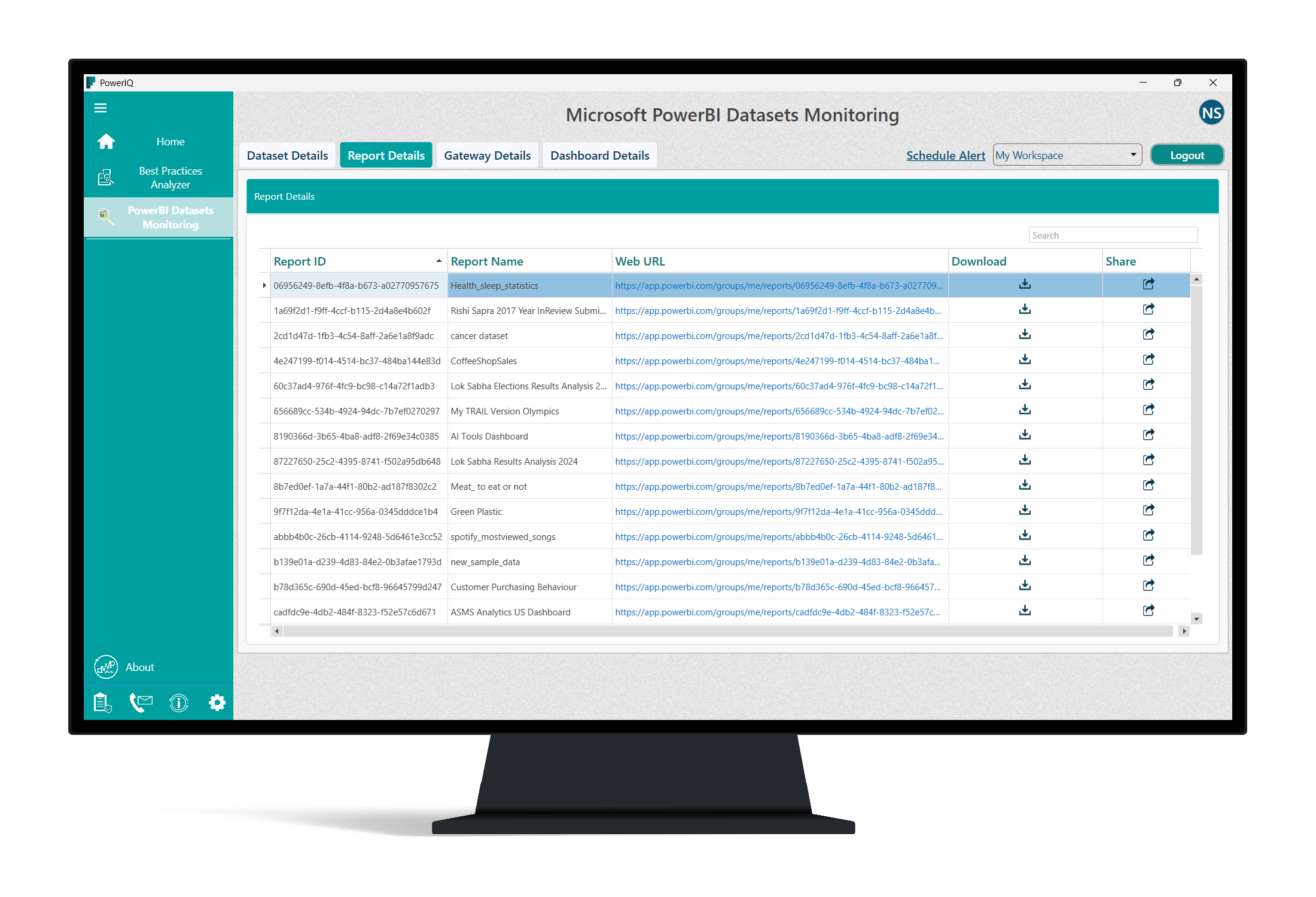 Download and install PowerIQ from the official site, then follow the onboarding wizard to connect to your Power BI accounts via Settings > Integrations.
