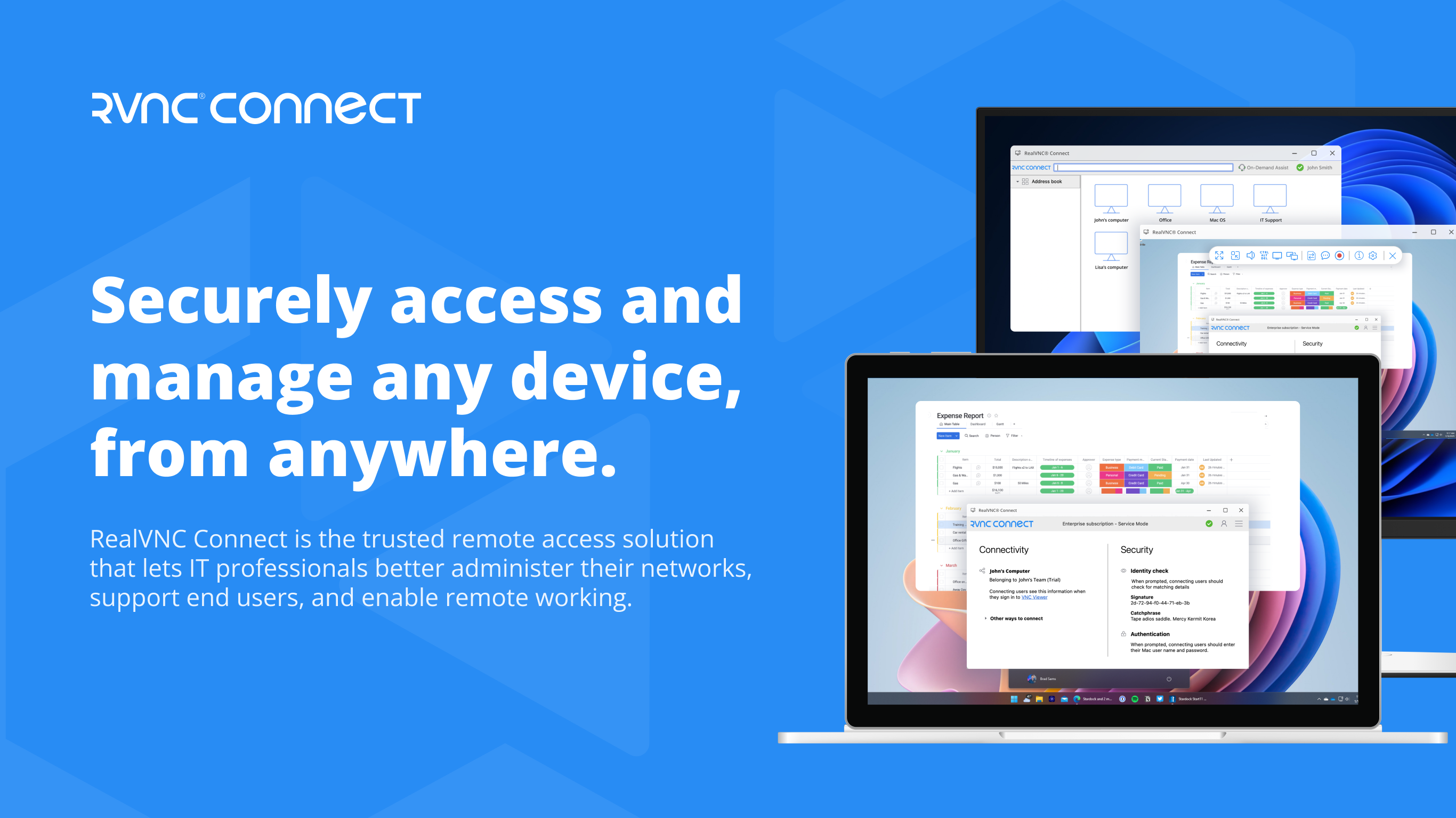 Yes, RealVNC Connect uses fully encrypted sessions with industry-standard security, certified through independent audits, to protect your data.