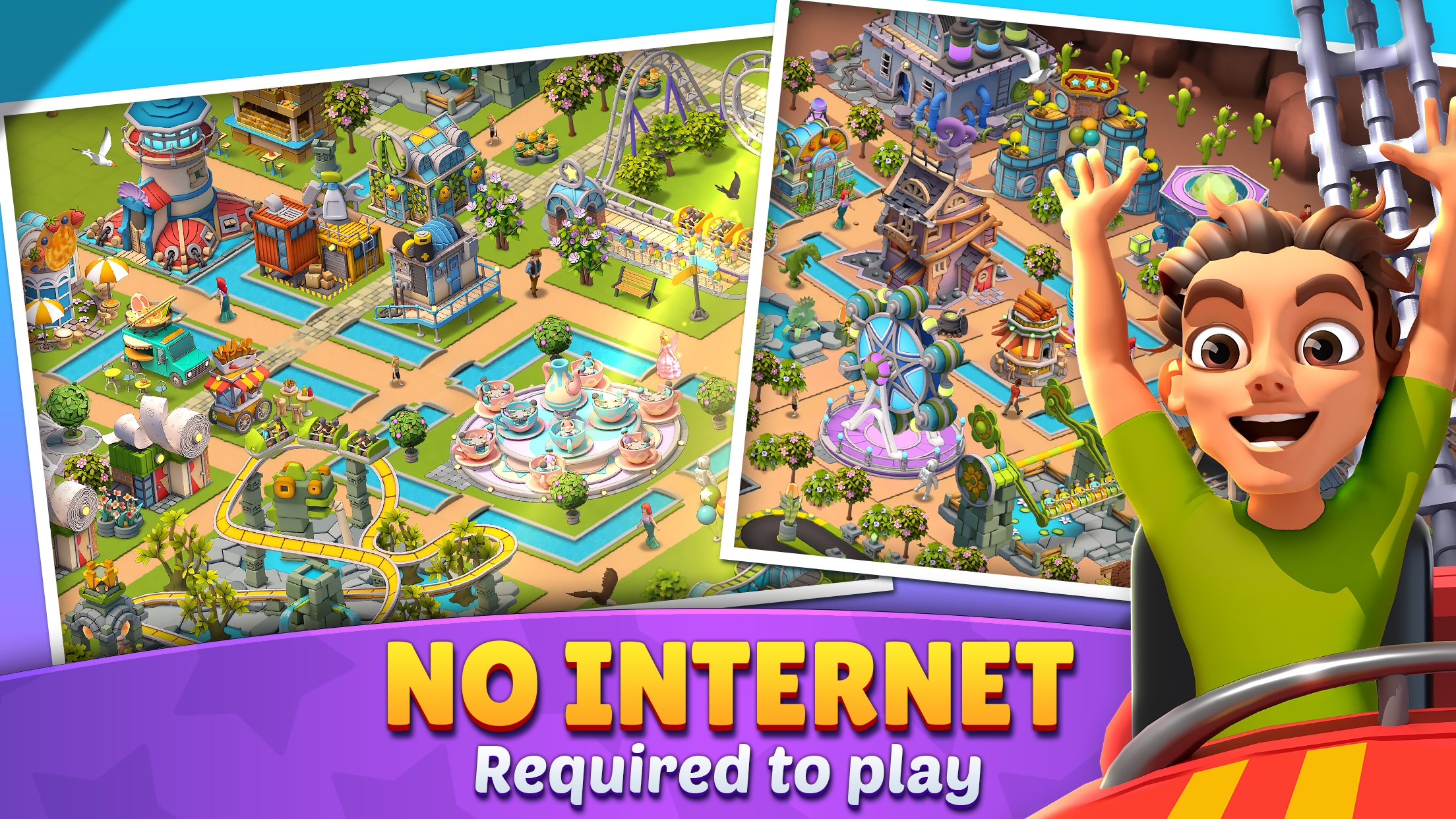 Yes, the game supports offline play, allowing you to build and manage your park anytime without an internet connection.