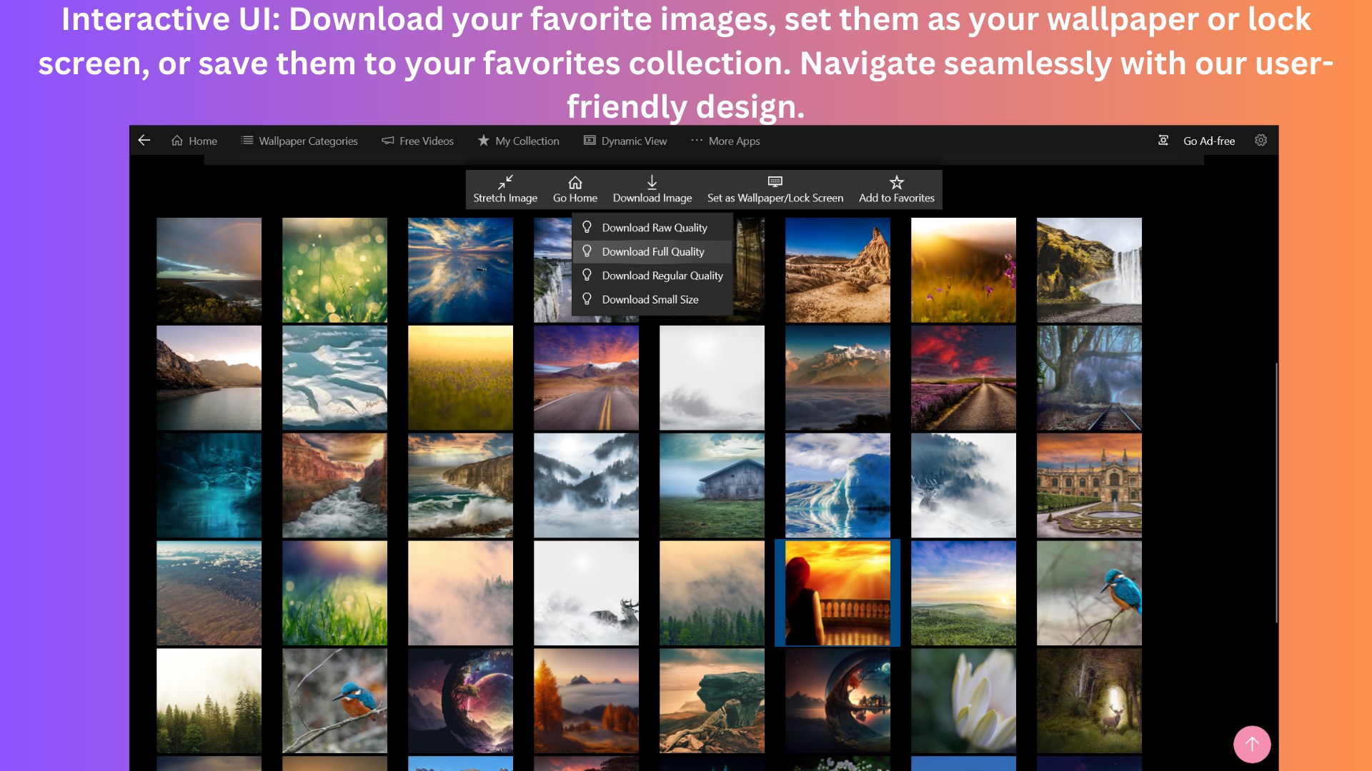 The app boasts a massive collection of ultra-high-definition images covering various categories like nature, technology, abstract art, and more. With thousands of fresh wallpapers added regularly, users are assured of constantly discovering new visuals to keep their desktops lively and inspiring. The images are meticulously curated to ensure premium quality and clarity, making each wallpaper an immersive experience.